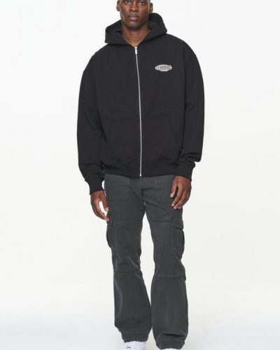 Pegador Zip Hoodies | MEN County Oversized Sweat Jacket Vintage Washed Onyx Black